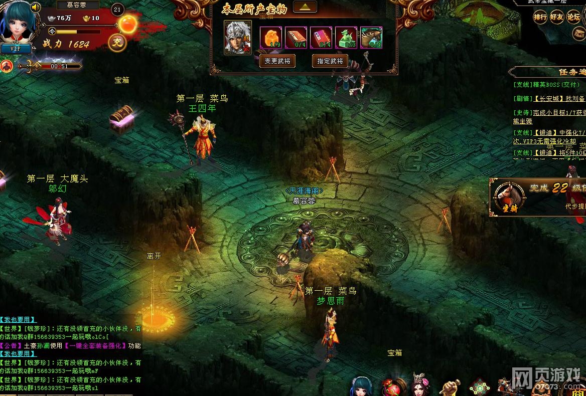 特色玩法:《我的三国》除了类型多样的任务和主线副本外,副本精英BOSS和藏宝窟也很有特色。精英BOSS副本中都是三国名将,而且防高血厚攻击强,玩家有一定实力再去。通关后任务奖励十分丰厚,喜欢挑战的玩家不要错过。藏宝窟是游戏中紫色武将宝物的最大产地,还有蓝、绿色神魂。每天战胜10个藏宝窟内的对手可以获得守护的宝箱,藏宝窟共有4层,层数越高奖励越好。而且战斗失败不会减少次数,战胜后次数才减少,所以若失败不怕,更换阵型和锦囊再次挑战即可。