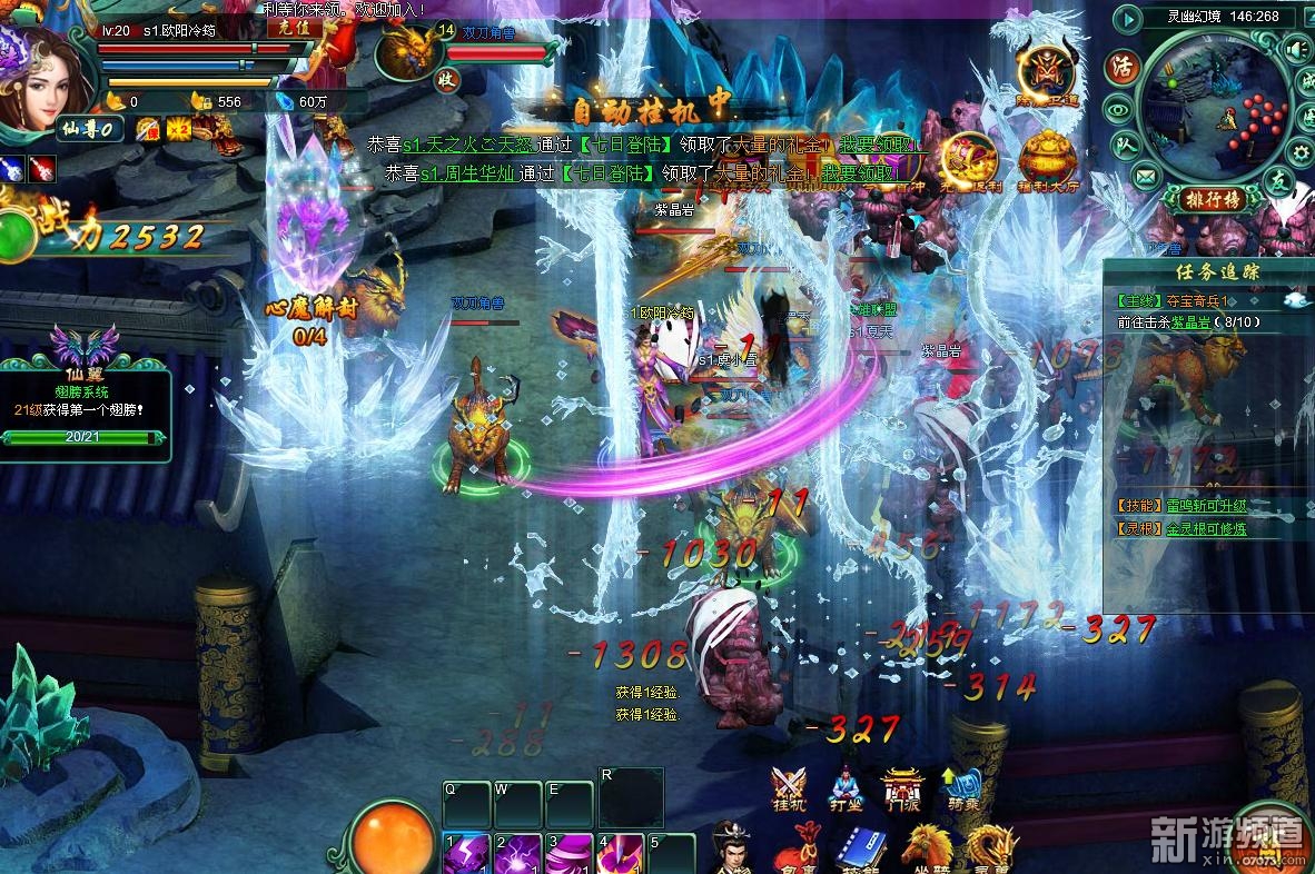 战斗操作:《心魔online》的玩法为标准的ARPG战斗方式,鼠标选择目标和控制方向,数字键控制技能释放,字母键控制功能栏。战斗时角色释放的大招甚至可以达到一招毙命的效果,在心魔中分为:群攻、单控、防守三种技能,根据职业的不同具体体现也有所不同,能够控制好冷却时间与保持有效打击距离将成为玩家战斗的关键。此外技能的升级也不可忽视,可通过消耗仙石和灵气来提升技能等级增强技能伤害。