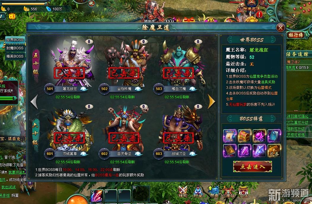 特色玩法:《心魔online》除了丰富的剧情和多类型的副本外,除魔卫道和副本大厅是很有特色的系统玩法。除魔卫道中云集了游戏中的众多精英BOSS,每天四次定时刷新,战斗时BOSS掉落的奖励归伤害最高的仙盟所有,给BOSS最后一击的玩家可获得额外奖励很有挑战性。副本大厅则是根据玩家等级逐渐开放,类型丰富有宝物、防守、多人、过关斩将、仙尊和转生众多类型副本,通关后可以获得大量经验和珍贵素材极力推荐。