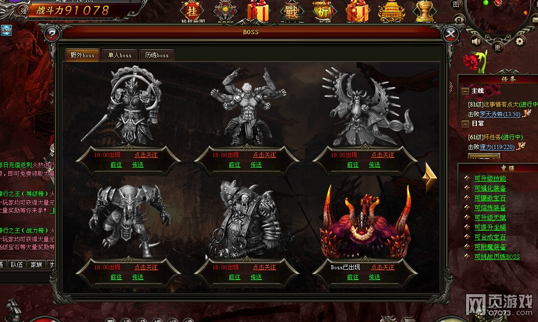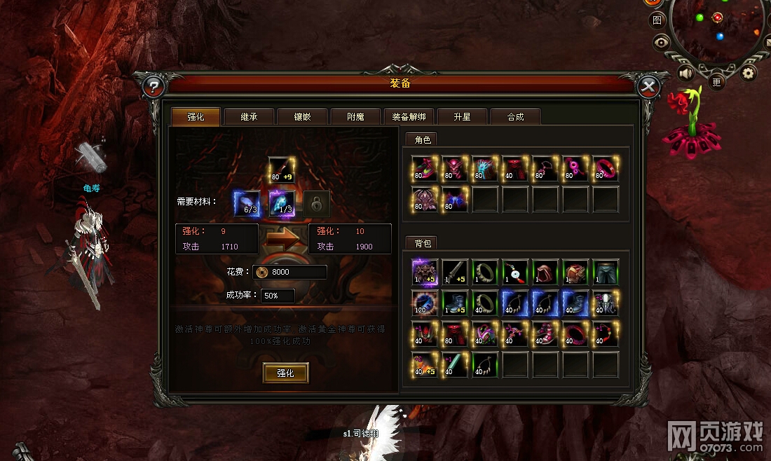 角色养成:游戏中主要提供了装备打造、坐骑、称号、技能升级4个方式来提升实力。装备打造则包括强化、升星、镶嵌、附魔与合成5个方法,相信前三个方法玩家们都已耳熟能详,小编就主要介绍下附魔与合成:附魔方法与强化类似,通过消耗附魔珠来附加额外属性,附魔等级越高则成功率越低,同时附魔不同位置的装备附加的效果也不同,比如武器附加的是属性伤害,而头盔附加的是气血上限;合成的作用是把3个相同装备合成同等级更高阶的1个对应装备,也是有一定的失败率,所以一定要三思而后行哟。至于坐骑与称号,都是直接给角色附加属性,坐骑可以进阶,进阶后不但属性加的更多,外观也会变的更酷炫,称号则需要满足一定条件才能获得,不同的称号附加的效果也各不相同。