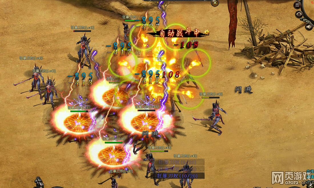 战斗操作:《刀刀烈火传》的战斗为标准的ARPG操作方式,通过鼠标左键选择目标和进行移动,数字键控制技能释放,在攻击的同时会积攒怒气,当怒气值蓄满就可以释放强力的大招。本作的挂机功能开启太过容易,除了用快捷按键来开启关闭外,只要鼠标左键双击怪物也会自动开启,这就造成了想通过走位及相对距离来“秀操作”几乎不太可能,不过看到后期跑环任务动辄就要杀两三百个怪,相信大多数玩家是不会选择手动的。