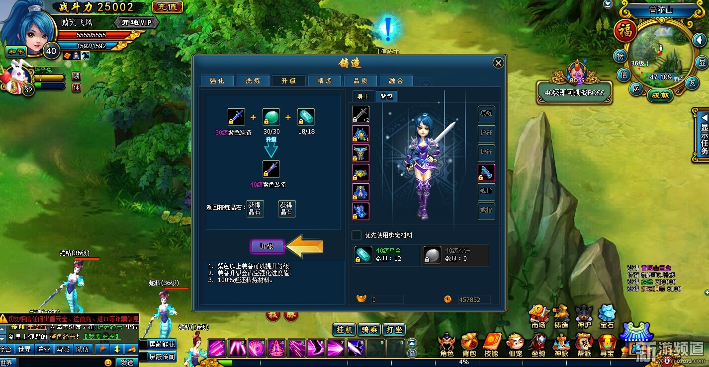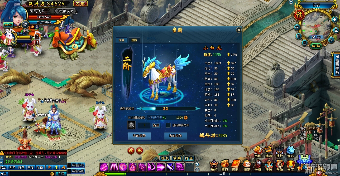 角色养成:《幻将西游》升级后会自动提升属性值,不需要再自己加点了,不过还有多种方式来提升角色的战力,如铸造、坐骑、神脉、称号等。铸造针对于装备上的提升,包括强化、洗练、升级、精炼、融合5种方式,需要消耗对应材料和铜币;坐骑通过进阶来提高角色属性,成功率不高,每次失败会积攒祝福值,祝福值可以提升进阶的成功率;神脉对应攻击防御等9种属性,每到一定等级就可以升级,仅消耗铜币而且不会失败;称号需要达成对应成就才能获得,多个称号可在人物上方并列显示,不但提升很多属性,也象征着强大的实力。
