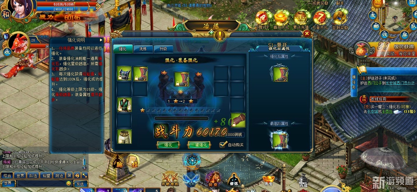 角色养成:本作在角色养成方面主要有冶炼、经脉、灵宠等系统。冶炼对玩家意义非凡,玩家可以通过强化、洗炼、升级、升品和传承强化装备提升属性及品质,增强装备战力。经脉系统可以通过修炼及提升根骨来额外增加人物属性,提升角色战斗力。宠物也是战斗力的一环,玩家可消耗升阶丹对宠物进行升级,从而提升宠物品质及属性,对玩家也有不小的助力。