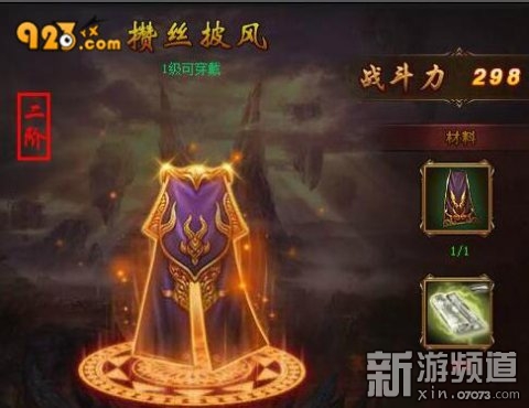 披风可以通过合成功能,获得各种高阶的披风,披风合成后将继承披风的强化等级。若是合成所有的披风或材料中,存在一个是绑定状态,最终合成高阶披风也为绑定状态。成功合成披风后,直接双击即可自动穿戴到人物身上。