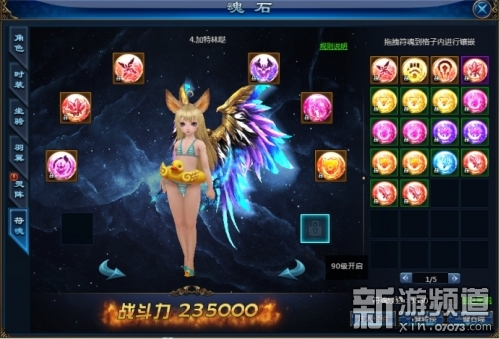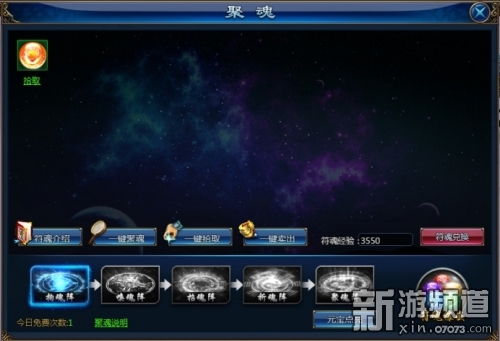 当玩家的等级提升后,魂石孔将逐渐开启,玩家拖拽魂石到魂石孔内可提高对应的属性,需注意相同类型的魂石只能镶嵌一块。聚魂需点击上方阵法聚魂和获得魂石,魂石镶嵌在玩家身上可获得大量属性。玩家每次聚魂都有概率点亮高级阵法,阵法级别越高,获得高级魂石的概率越大。