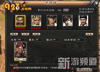 所谓将谱,就是记录三国里有名的将领谋士的稀世奇书,同样,它也是923yx《霸王之心》中相对重要的一个系统。通过将谱系统,大家可以获得一系列的功能卡牌,可以应用于遭遇战中。此外,大家还可以得到剑术经验,可以用来升级获取的技能卡牌。