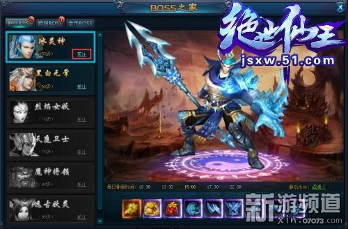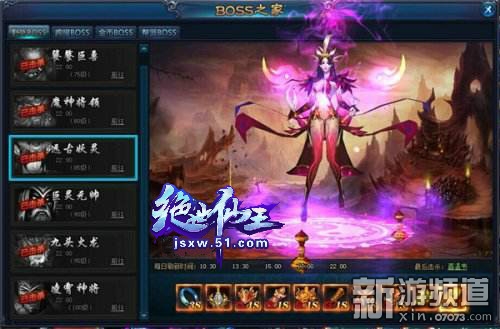 51《绝世仙王》的BOSS之家是一个面向本服所有玩家的野外BOSS副本,凡是参与击杀BOSS之家的玩家,均可以获得对应的奖励。该玩法奖励丰厚,难度也比较大,所以规定在游戏中等级必须达到55级并且加入国家阵营的玩家才可参与。在51《绝世仙王》BOSS之家中,所有BOSS被击杀后都有一个复活时间,要注意掌握进入时机,以免错失良机。玩家可通过主界面上的【BOSS之家】进入BOSS副本主界面,左侧是BOSS列表,上面显示有每个BOSS当前的刷新状态,可让玩家清楚了解到想要挑战的BOSS的状态。