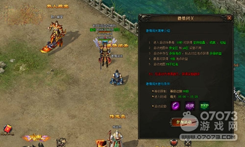 游戏中的激情闭关可每天有20分钟时间在里面进行厮杀,在活动中杀人是不掉落任何装备和红名的,所以玩家可以在活动时间内尽情的击杀任何对立的玩家。值得注意的是这个活动就是为了pk而存在的。强者之路从不停的战斗开始,萝卜玩《炎龙传奇》激情闭关就是你最好的开始。