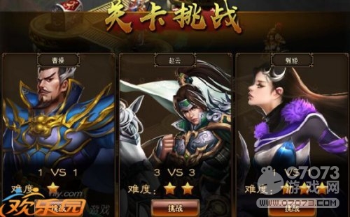乱世立足,个人实力很重要!欢乐园《极品三国志》过关斩将毫无疑问就是块试金石,到底几斤几两重,试试就知道!通过不断攻克一关又一关的将领,不断向顶层发起进攻!虽说没有刘备一样的大哥在呼唤着我们,但每过两关都有宝箱等我们开,排名越高奖励越豪华,就冲这点可得拼命干!
