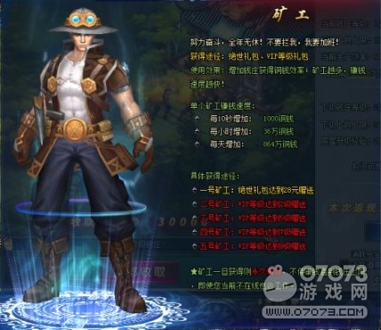 当有了钱庄之后会自带一个旷工拼命赚取铜钱,旷工暂时只有绝世礼包和VIP等级礼包两个方式可以获得。提醒一下哟,每日前8个小时钱庄收益最大哟,毕竟工作久了,旷工也会累的。