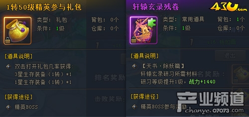 下面来说说大家最关心的奖励吧!击破BOSS护盾,点数排名前3的玩家将会获得护盾奖励,BOSS死亡后,在场景内对BOSS造成的所有玩家都将获得丰富的参与奖励:1转50级精英参与礼包、轩辕玄录残卷。