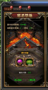 69级可进入的邪恶禁地(每天可以进入2次),过关报酬是能提升主角生命上限的龙珠;
