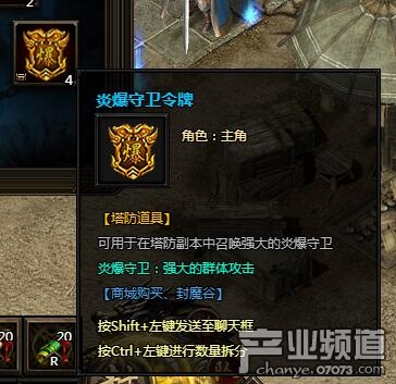 炎爆守卫令牌。可用于在塔防副本中召唤强大的炎爆守卫。