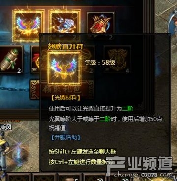 翅膀直升符。光翼材料。使用后可以让光翼直接提升为二阶。光翼等阶大于或等于二阶时,使用后增加50点祝福值。