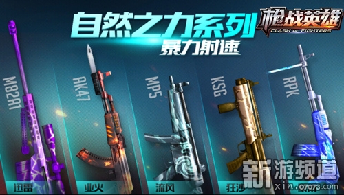 经典名枪,量身定做,自然之力助你血战到底!AK47、KSG等人气装备注入特定的元素之力后,铸就了迅雷、业火、流风、狂沙、豪雨五把神枪,不仅枪身绽放着专属的流光特效,火力系统也得以觉醒升级:更加炸裂的伤害输出,更加疾速的射击手感,战场称雄成就枪王之王!