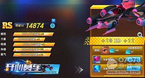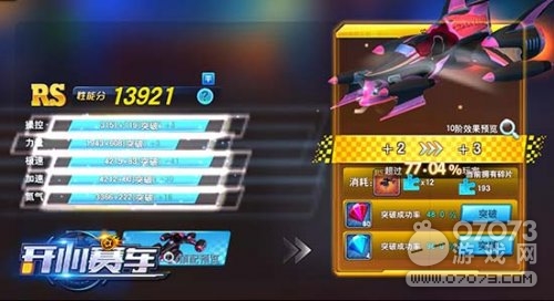 车辆升到一定等级后可以开启突破,突破能大幅提升赛车的五维属性,并且激活专属的星级外观特效。赛车的突破需要消耗对应赛车碎片等道具,突破顶级为20级。
