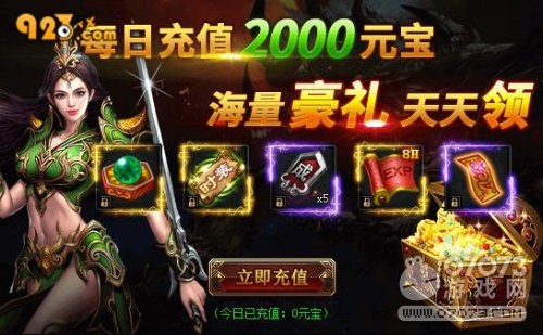 活动期间内,每天充值2000元宝可以领取1000W经验,时装兑换卷,成就令牌,探宝符、8小时三倍经验符等海量道具!