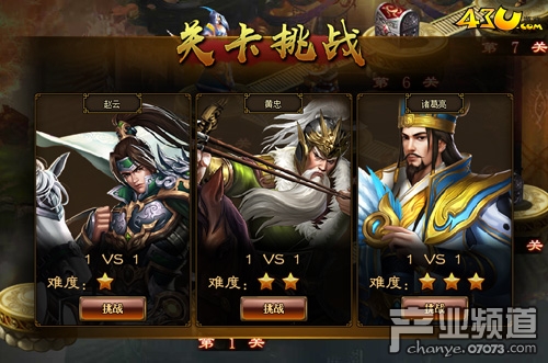 在43u《极品三国志》中,玩家每天都可以在过关斩将来闯关一次,挑战成功会得到很多奖励,假如挑战失败了也没关系,因为未通关的关卡当天可以无限挑战,直至成功。