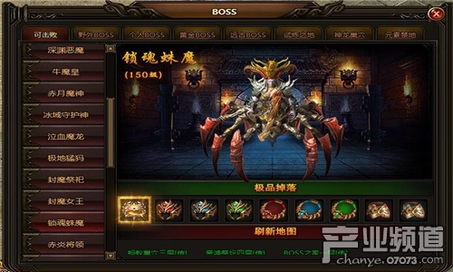在刷新地图方面:锁魂蛛魔存在的地图有3个。5217yx《刺沙》分别是蚂蚁巢穴三层、帝鸿祭坛四层和BOSS之家一层。三张地图上的BOSS等级属性都相同,掉宝也都差不多,没有孰强孰弱之说。由于三处锁魂蛛魔的等级相同,血量相同,掉宝率也一致。