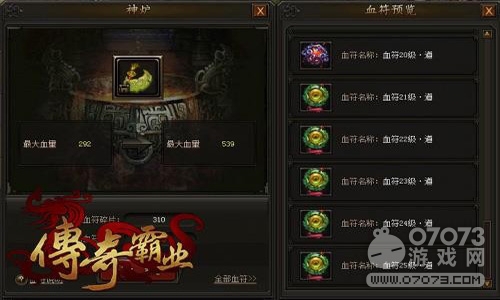 点开熔炉面板,这是萝卜玩《传奇霸业》中提升实力的一大途径,血符可以提升玩家的血量上限、宝石对应的是玩家的攻击力,魂珠对应的是暴击力与暴击率,护盾则对应玩家的防御力,在游戏中参与活动可以获取大量的碎片,升级激活这些,可以使玩家的游戏角色变得更强。