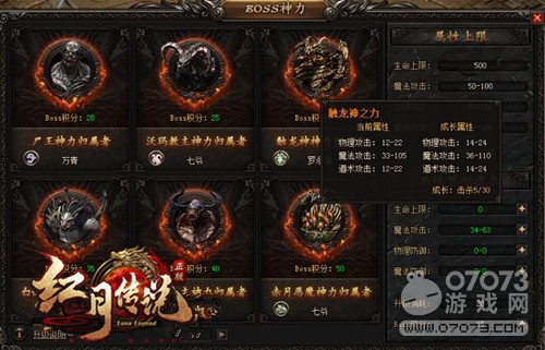 51《红月传说》别出心裁的准备了神力系统来配合游戏中的boss系统,让boss在也不是单纯的为玩家提供高品质装备的装备库,而是可以实实在在的可以为玩家提高战斗力,可以这么说,你大的boss越多获得属性也就越多,而且每次击杀一个boss除了永久的属性加成外还能获得临时的buff加成,boss越强大buff加成越厉害,不过要注意的是,buff加成是可以被其他玩家掠夺的哦!
