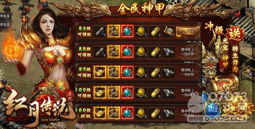 相比一般的传奇页游,51《红月传说》中的神兵神甲作为游戏中的高级装备再也不需要玩家耗费金钱来获得,而是别出心裁的改为等级到了就可获得,所以等级在《红月传说》中是非常重要的哦!