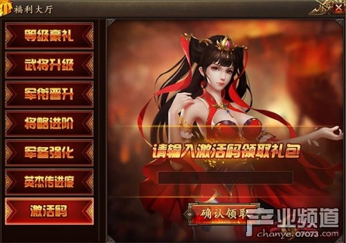 使用方法:点击游戏界面【福利大厅】-【激活码】,在框内输入激活码即可领取奖励。
