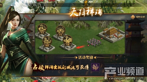 每天(除周六)20:00-20:30的这个时间段玩家天降祥瑞,紫气东来,祥瑞降于凡间,等待各路英雄前去挑战。活动开始后将会天降祥瑞于随机城池。争夺城池归属,活动结束时,城池归属国的玩家可以领取城池上的祥瑞宝箱。活动结束后30分钟内可领取祥瑞宝箱。