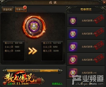 玩家到达50级就可开启成就系统,可以通过登录、升级、杀怪、击杀boss、升级翅膀、完成副本、与玩家PK等方式来完成成就,获得成就积分,获得的积分可用于升级成就勋章。成就勋章可以增加物理攻击、魔法攻击、道术攻击、生命值、魔法值属性。成就积分的获得可以通过快速购买(商城购买)或者活动掉落。