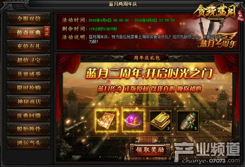 仿佛是一眨眼间,《贪玩蓝月》游戏运营已经2周年了,这7百多个日日夜夜,见证了无数传奇玩家奋斗的历程,我来过,我见过,我征服过。这段传奇生涯一片无悔,谁也不能剥夺我们尽情快乐的权力,激情的战斗只有懂得享受的人才能明白它的魅力所在。周年庆典期间的双倍经验是否让你的角色等级飞速提升了呢?周年庆典豪华大礼,助力你狂饮仇敌项上血,笑傲蓝月我为颠,不疯魔不成佛,极致的快感尽在此处。