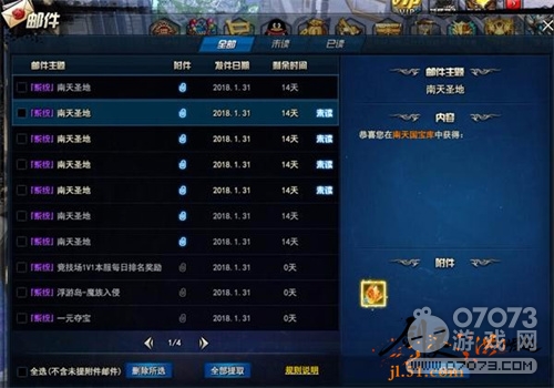 南天圣地每周一五点刷新,刷新后可再次获得各层首通奖励,并刷新本周南天秘宝奖励。在副本内的宝物会在最终BOSS死亡后以邮件形式发送。