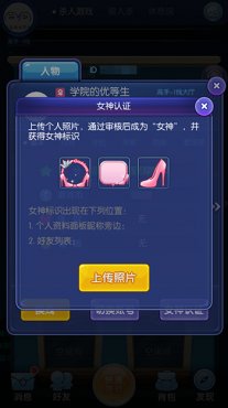 第一步:女性玩家的个人资料面板中会出现“女神认证”按钮: