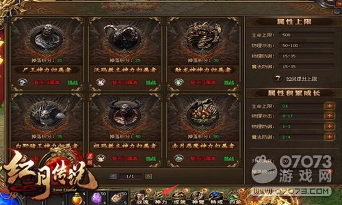 右边,属性上限和属性累积成长。意思很简单,当消耗积分升级四种属性都达到属性上限时,会突破至下一阶属性,以此类推。这里小主给勇士们提个醒哦,随着属性成长消耗的积分也会增多,而且,每次升级时属性的成长值是随机的,这就靠你们的运气啦~