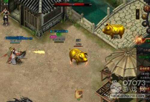 找到后果断斩杀,抓紧时间,消灭一头之后赶紧前往下一处寻找。如果现场的玩家很多,就非常考验眼疾手快了,玩家不够多那倒还好。傲天蓝月传奇小编选择的道士伙伴倒是比较占优势,召唤出一只神兽帮助我们一起消灭金猪。相当于一头金猪面临3重打击,斩杀金猪的效率大大提升。
