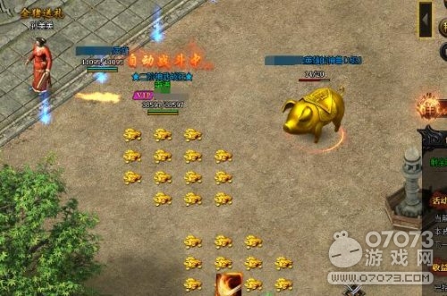 每一波刷出的金猪分布在比奇城内的各个角落,傲天蓝月传奇小伙伴们一定要仔细寻找。有些金猪扎堆一处往往会出现3~5只,有的地方却一头也看不到。一定要快速移动,找到它们,然后开始捡到手软的金币之旅。