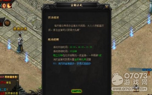 找到孙美美之后,她会告诉你一些细节。傲天蓝月传奇游戏里每天会有很多金猪从天而降,大小孩子都喜欢抓,抓住金猪可以获得大礼哦,这就是江湖人士为什么会喜欢参与这个活动的重要原因。来到美美这里我们才知道,每天开启活动的时间并不只有上午的十点,下午16:15和晚上的21:35也分别有一场这样的活动。每次活动时间持续15分钟,活动期间每3分钟在比奇城内刷出一波金猪,消灭金猪可获得大量的金币和礼券奖励。一共刷出5波,消灭得越多,奖励越丰厚。