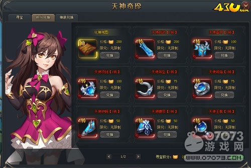 看看43u《斗罗大陆》天神奇珍都有哪些宝物吧!化神残图、武器神级轴、各阶防具增益宝石、饰品增益宝石、武器增益宝石、耳坠炼品石、武器炼品石、神武进阶丹、羽翼进阶丹、坐骑进阶丹、灵羽进阶丹全都有哦!