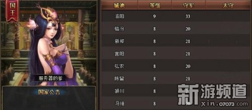 成为国王享有无上的荣耀,在自己的势力范围内还可以主宰生杀大权。651k《百将天下》国王除了能够领取到最给力的俸禄之外,在自己的领地之中,可以对我方阵营战力排名前20的主公成为我方的城池太守,并且将太守的兵马纳入自己的禁卫军麾下,根据自己意愿决定太守的任期,通过巩固势力城防抵御敌人的来犯。