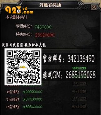 封魔谷是923yx《霸王之心》中重要的经验来源,当等级达到55级后,即可前往盟重土城与封魔谷NPC“段伏藏”对话进入封魔谷,封魔谷每日只可进入3次。 当成功击杀怪物,经验将进行累积。 战斗结束时可以进行经验结算, 大家也可以选择消耗元宝多倍领取奖励。