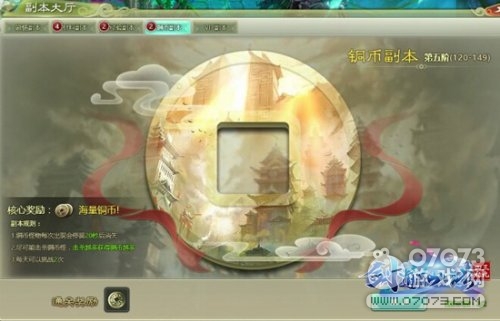 在游戏主界面中找到“副本大厅”图标,点击即可展开副本界面。选择“铜币副本”,就可以进入副本进行挑战了哦。