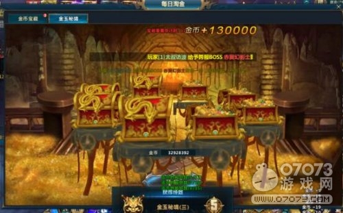 没想到在赚取130000金币之后还可以开启成就奖励中的金玉秘境(三),真是意外的惊喜。一口气开了4个宝箱,如果还想开启第5~8个,那就赶紧去准备一些元宝来试试更多惊喜。傲天武动乾坤每日淘金是不是很不错?一旦缺钱就赶紧去完成吧。