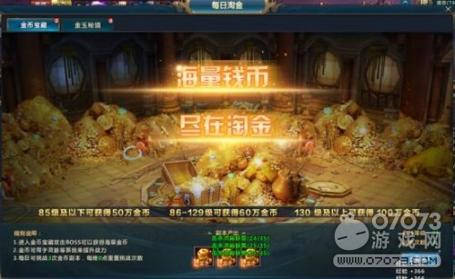 傲天武动乾坤游戏里每日都会有淘金的相关活动。江湖传闻,一旦开启淘金活动,只要你眼疾手快,无论如何也能赚得盆满钵满。你行走江湖的第一捅金币,就数这里赚钱最过瘾。每日淘金中有两个主要活动,一个金币宝藏,另一个是金玉秘境。这两个活动有不一样的意义,当然只是活动方式不同,参与其中任何一个活动都可以获得高额金币。我们今天就一起来看一看每日淘金中的金玉秘境。