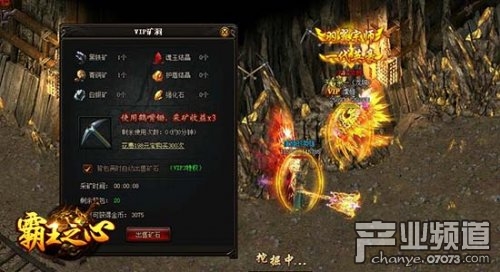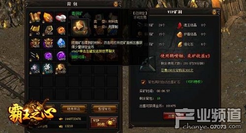 在9cb《霸王之心》的霸王城中找到传送员NPC后,可以选择传送到普通矿洞或VIP矿洞,两种矿洞中可挖到的物品相同,VIP矿洞可以使用鹤嘴锄,采矿获得三倍收益。