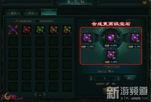玩家点击需要合成的宝石,将3个相同的宝石合成高一等级的宝石以获得更高的宝石属性。