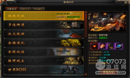 面对怪物攻城,6399yx《蓝月传奇》江湖上的百姓们早已见惯不惊了。每日下午三点活动大厅中怪物们会准时集结,玩家们只需要找龙城守卫处报道,便可作为守卫龙城的重要力量保卫家园。入口的开放时间为30分钟,也就是说我们要在30分钟内与攻城的怪物进行殊死搏斗。玩家小伙伴们需要首先完成主线任务,才有参与守卫龙城的资格。如果能获得火龙精华奖励自然是最好的,此外还有一些其他的材料也不错。
