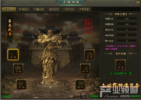 热血战歌之创世近期新出了大陆神像系统,开服天数≥8天,并且玩家等级达到150级,可通过点击“大陆神像”按钮打开界面查看,玩家通过击杀boss获得神像装备。