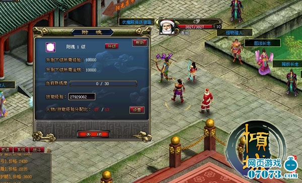 拥有了附魂技能并没有完结,它跟一般的技能一样,你得对其进行升级。每次成功合成附魂珠都会增加附魂技能熟练度,合成与自己附魂等级相同的附魂珠能够增加更多的熟练度,若熟练度满后未及时升级附魂技能,熟练度将不会继续增加。附魂技能升级的条件为,金钱、经验、熟练度。