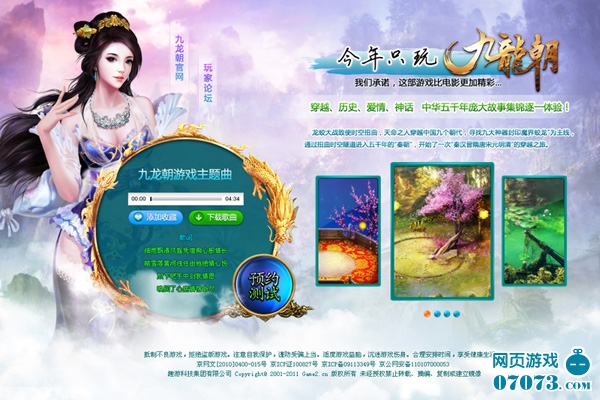 《九龙朝》游戏主题曲《梦回九龙朝》目前已正式发布(http://9.game2.cn/mhjlc/),玩家可登录官方指定的地址试听或下载。此外,每一位热爱唱歌,并想拥有一首属于自己“单曲”的玩家,都可以参与到《九龙朝》主题曲献唱玩家。你只需下载《梦回九龙朝》伴奏带,并将自己的演唱版本上传至官方指定的活动地址。在活动结束之际,官方将根据玩家投票选出最佳“好声音”,并邀请该名“好声音”成为《九龙朝》主题曲的“主唱”。