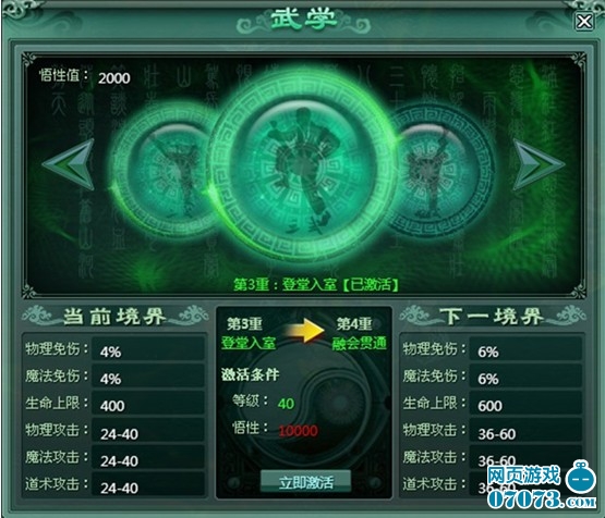9377《怒斩》中的武学系统,可以提升角色的物理及魔法免伤、生命上限、攻击等属性,通过累计悟性值即可激活这些属性。武学系统系统总共分为十重,武学修为越高,为人物加成的属性越高。当任务武学级别达到十重后,将激活武学巅峰,激活武学巅峰的两重境界,将为人物带来更为丰厚的属性加成。