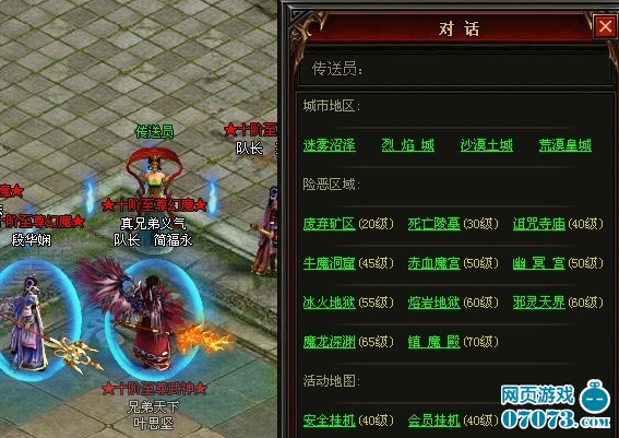 9377《烈焰》的副本不难找,在每个主城地图中都是地图传送员,一般的位置都是在安全区的最上角处,有一位非常妖娆性感的美女,你走近后点击她身体的任一部位就可以打开对话框,对话框里全是可以直接传送的地图。最上面城市地区——四大主城,中间的是险恶区域,也就是副本了。而最下面的活动地图,当然也是副本,只不过挂机专用而已。